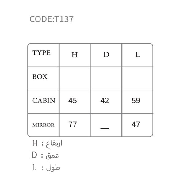 مدل T137 با رنگبندی متنوع به همراه آینه ارائه شده است. روشویی کاملا ضدآب، مناسب سرویس بهداشتی و حمام و محیط های مرطوب و استخرها و … است. روشویی T137 یک محصول با کیفیت و کاربردی است که به دکوراسیون حمام جلوه‌ای مدرن و شیک می‌بخشد. روشویی های گالریا قابل شستشو با انواع شوینده می باشد.